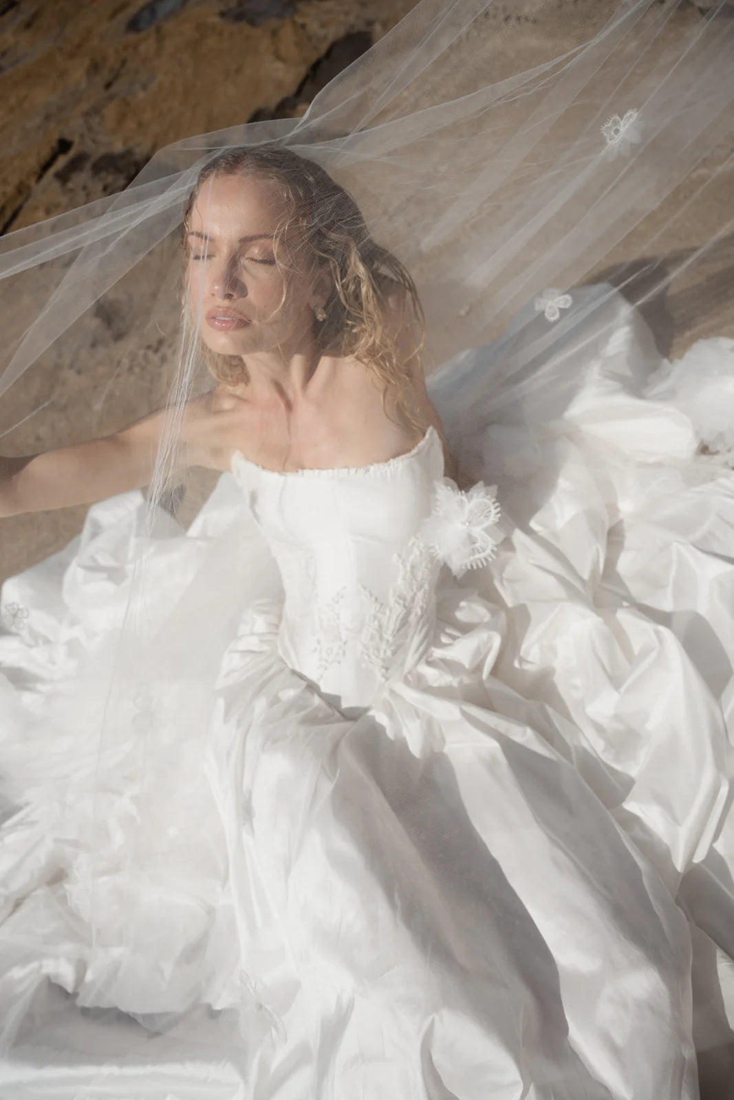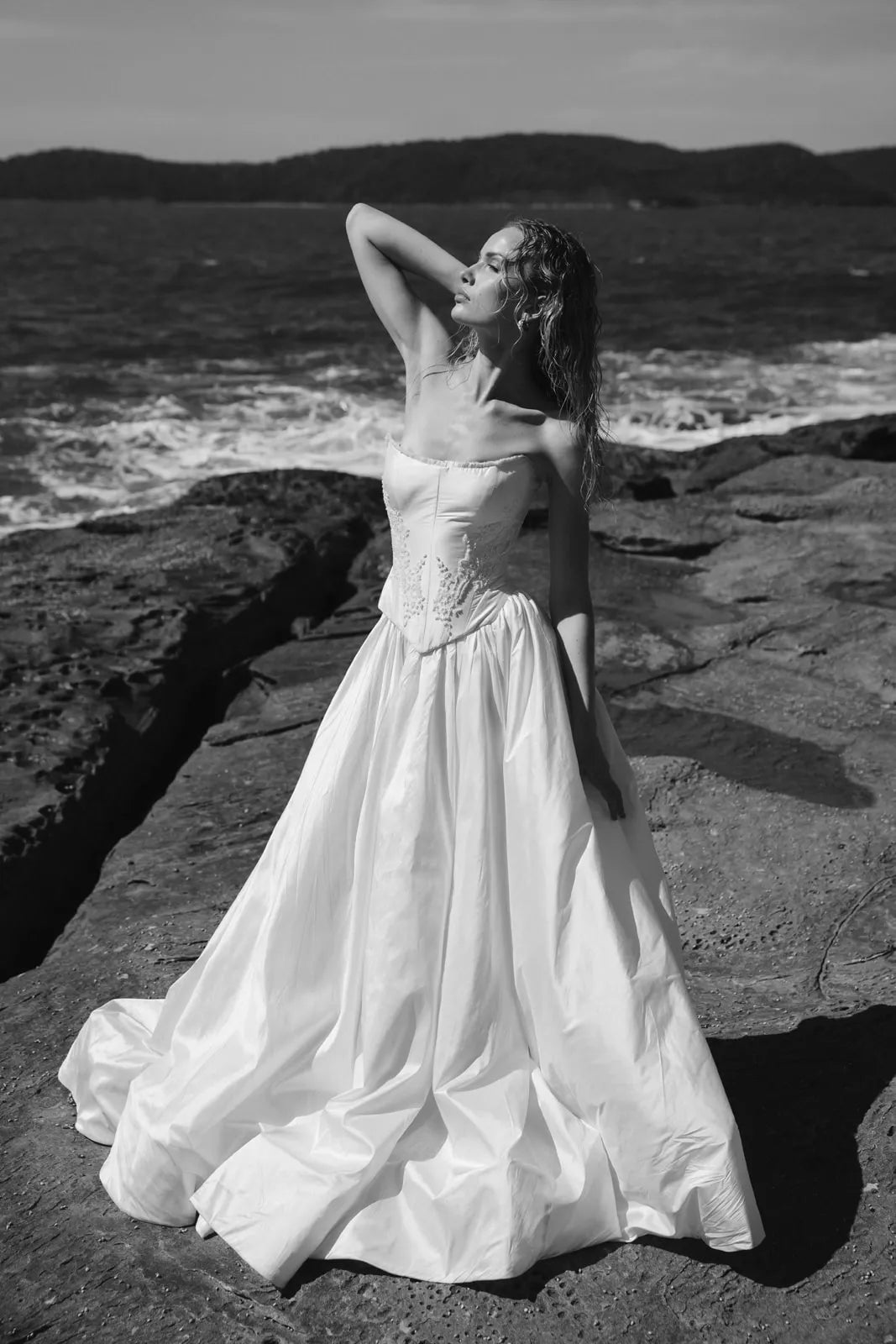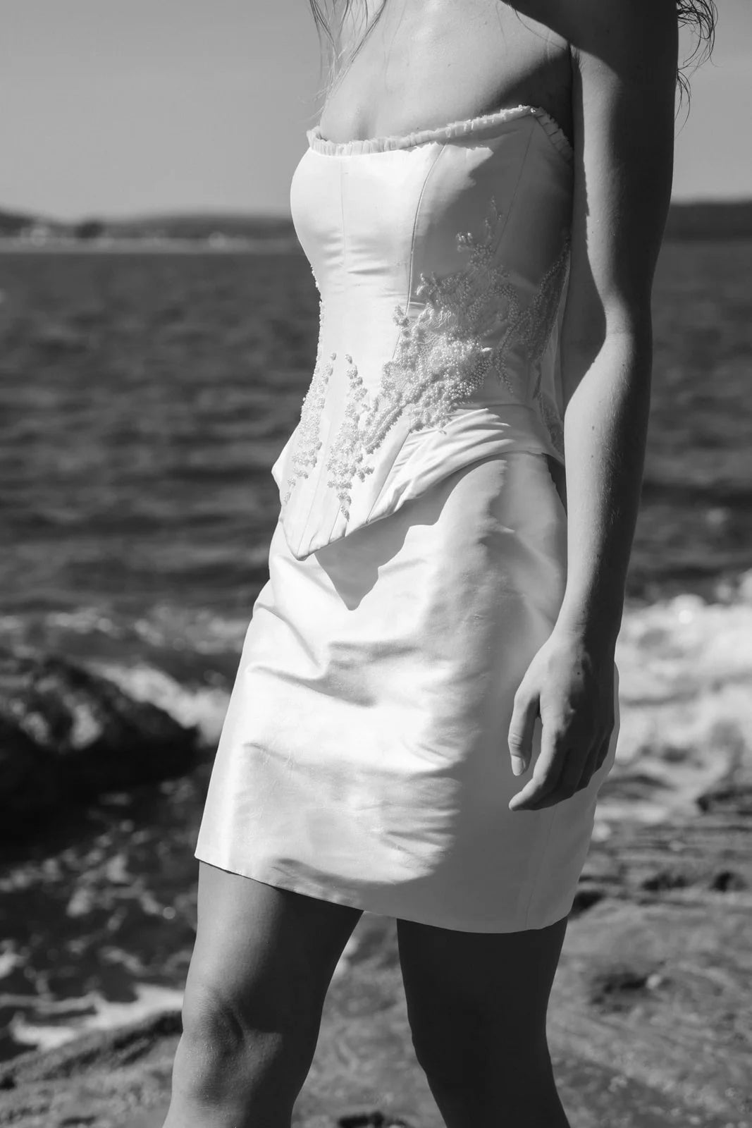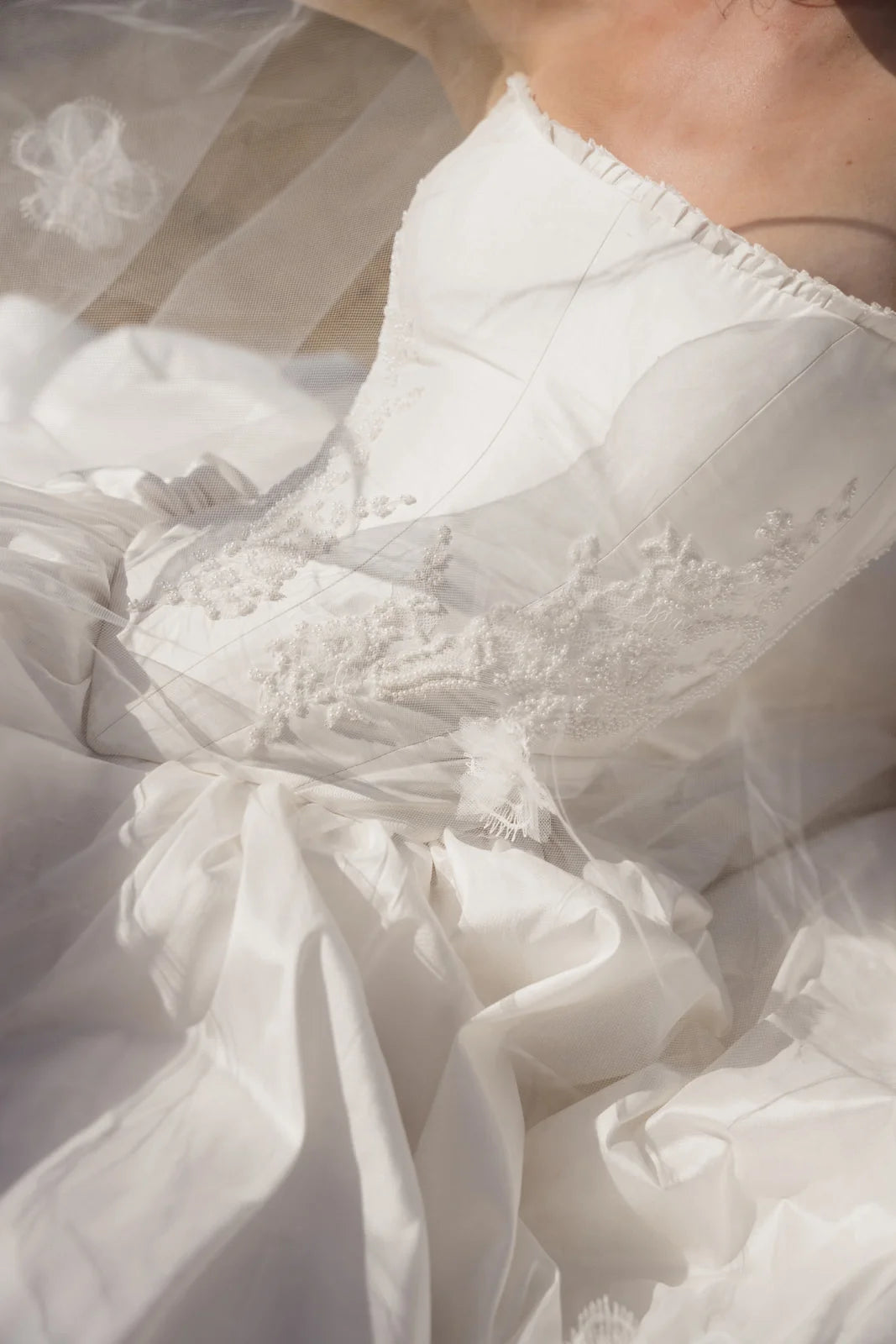 The Tempeste Bodice is the perfect foundation for a modern bridal look. Crafted from luxurious raw silk, this corseted piece cinches beautifully at the waist while hand-beaded lace adorned with pearl details creates an understated luminescence. A delicate hand-ruffle frames the neckline with elegance. As part of the versatile Tempeste separates collection, this bodice pairs seamlessly with the gathered skirt to create your complete gown—or mix and match to express your unique style. Effortlessly striking and designed to make you feel confident on your special day.