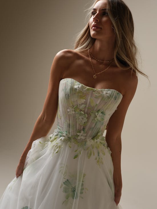 *Due to the nature of the hand painted motifs, any discrepancies in details is not a flaw and should be considered a unique quality of each gown
