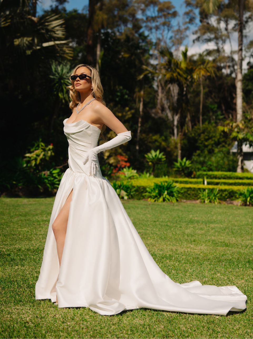 Nothing makes an entrance like a statement sculptural wedding dress, and our Alek gown most definitely turns heads. If you are looking for a gown that will not only show off your figure in the most wonderful way, but will also make a fashion statement, then look no further.