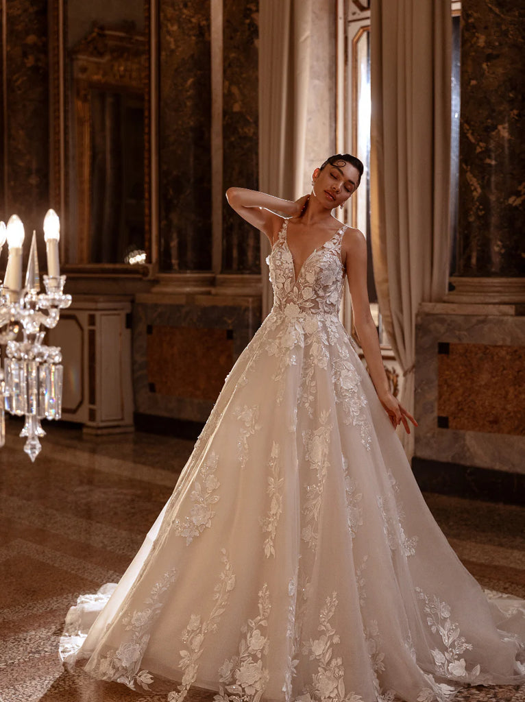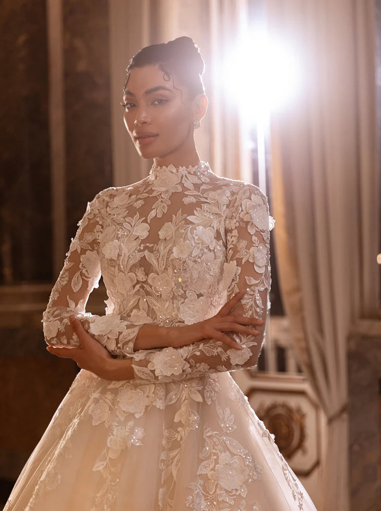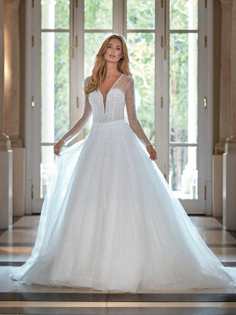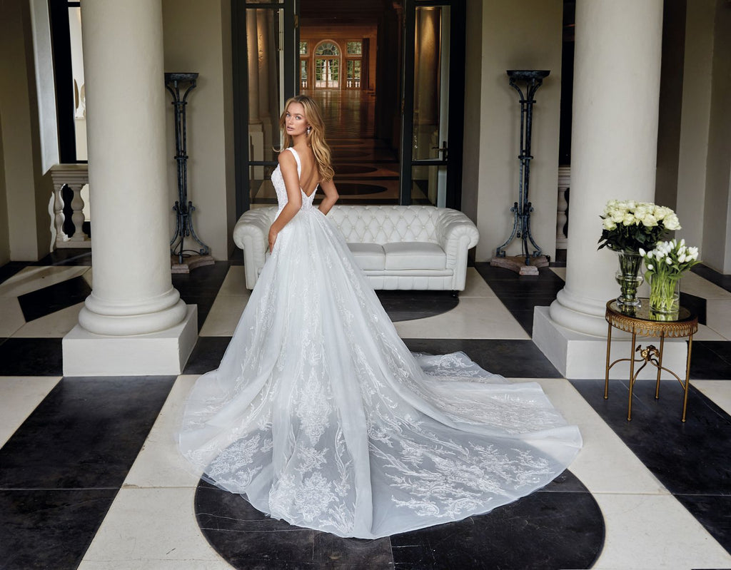 The Platinum by Demetrios a is luxurious, opulent and dazzling bridal collection. For the queen that is all about glamour and allure, you are sure to make an entrance that no one will forget. High fashion feel, Haute couture look.