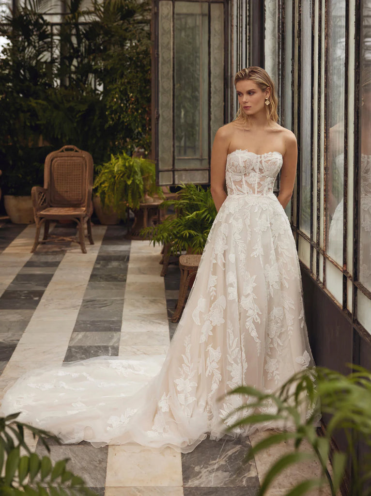 This gown is being sold as a final sale item and may have some wear and tear from being a sample.