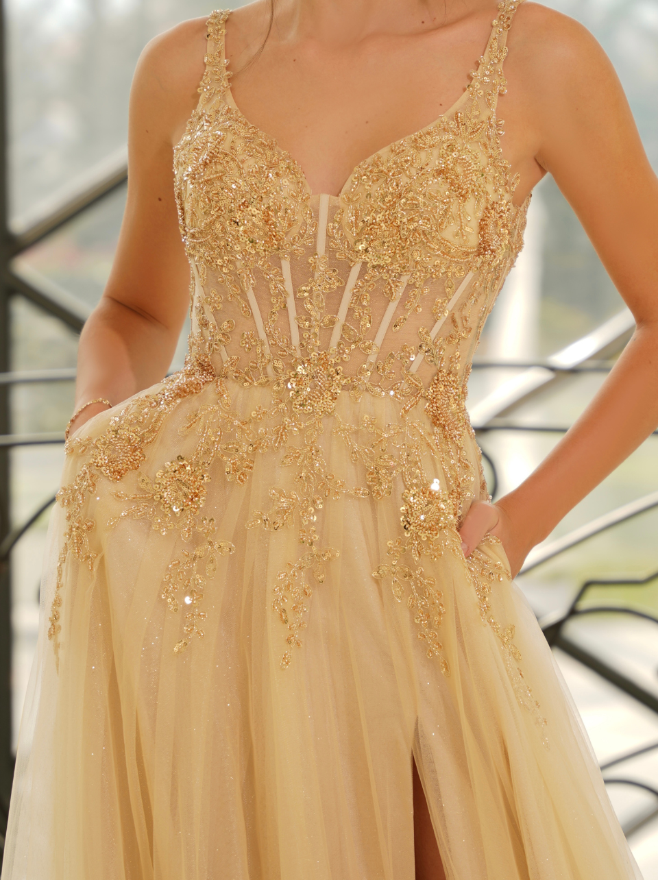 The Celeste embodies sophisticated grandeur for the modern bride who refuses to blend in. Adorned with intricate beadwork that shimmers with every movement, this ball gown features luxurious layered tulle that commands attention and creates an unforgettable silhouette. Whether you're walking down the aisle or making a red carpet entrance, the Celeste delivers the perfect balance of timeless refinement and contemporary boldness. Designed to make you feel confident, radiant, and absolutely stunning, this gown celebrates your unique style while ensuring you'll be remembered long after the celebration ends.