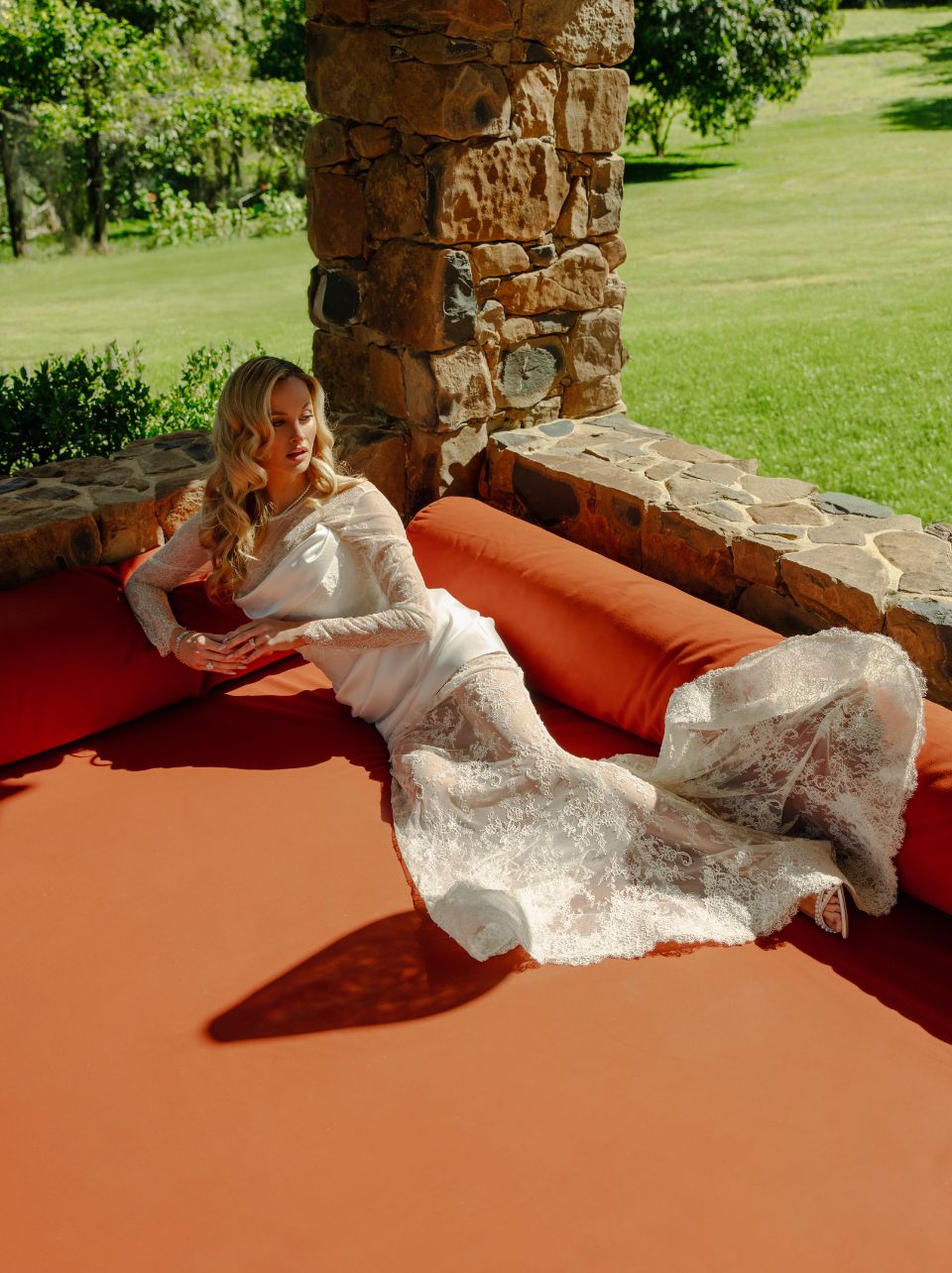 Chic, elegant, and textured. Meet the most stunning sheer lace wedding dress, The Aspen Basque & Remi lace skirt.