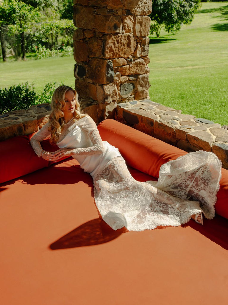 The Aspen Basque bodice and the Remi skirt are made as separates to create your own individual bridal style. Pair them as a set, or mix and match them with our collection to create your very own bespoke bridal look. This sheer lace wedding dress is waiting just for you!