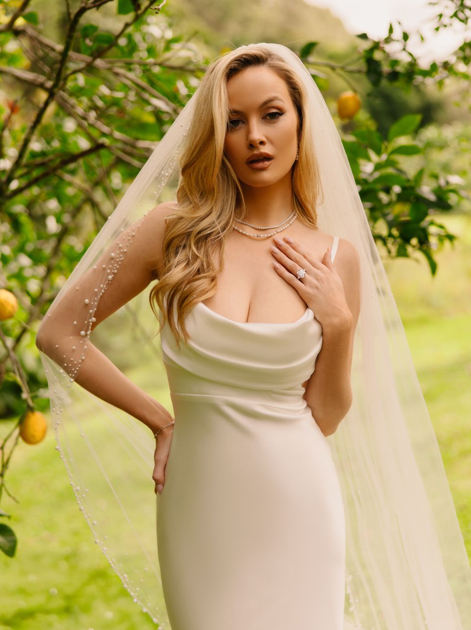 Slinky and chic, this is the simple satin wedding dress you’ve been dreaming of! Meet Emerson. Our latest empire line gown featuring a soft cowl neckline that oozes elegance.