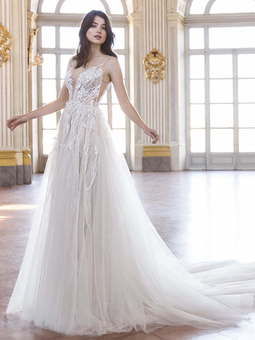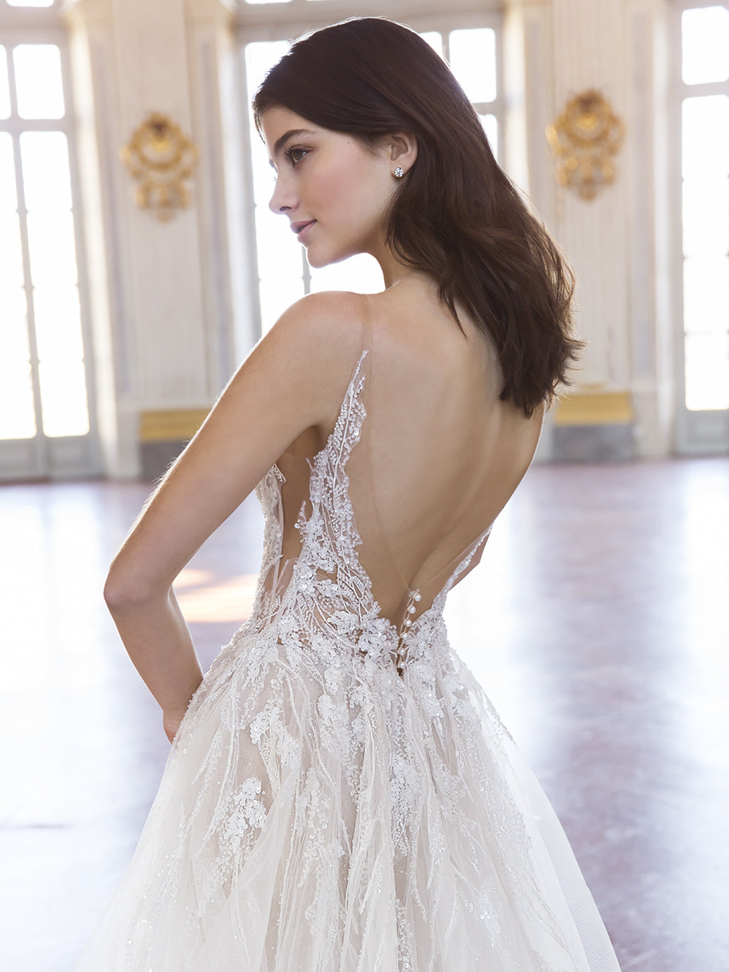This gown is being sold as a final sale item and may have some wear and tear from being a sample.