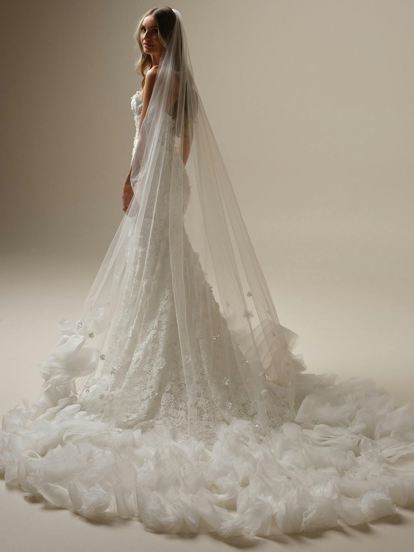 This gown is being sold as a final sale item and may have some wear and tear from being a sample.